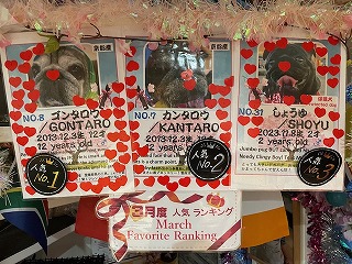 1位 ゴンタロウくん♡ 2位 カンタロウくん♡ 3位しょうゆくん♡