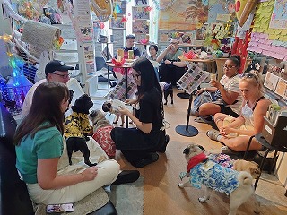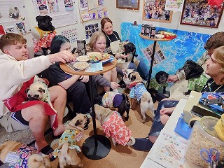 普通の動物カフェではなくパピー〜シニアまで全てのパグが、愛好家のオーナーの溺愛犬で、パグ愛好家の為のパグの夢の国です😘6月は初夏祭りでみんなアロハ衣装でお出迎え🌴🌺ベビールームでは生後6ヶ月、7ヶ月、9ヶ月ベビパグ達が社会化トレーニング中です。オプションで犬の保護活動支援のおやつを注文(寄付)していただくと、ベビパグ達とベビールームにて遊ぶことができます。 【パグカフェ京都Living Room】 オーナーの最初のパグの溺愛犬(享年15才7ヶ月)から繋いできた血筋の親子6世代の贅沢過ぎるbabyからシニアまで全世代のパグまみれになれるのは世界中でも京都パグカフェだけ❗お嫁さんで迎えた世界でも希少な白パグ2頭います✨更に世界で1頭しかいない白パグのミスカラーも❗保護犬活動で啓発と保護犬2頭を大切に終生飼育。 国内外からパグ愛好家がご来店❗️当日お席確約は事前にお電話でお席、駐車場(4台)のご確認を!ご予約は『じゃらん』から👍13時半〜18時閉店