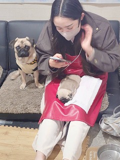 ❤️1/2生まれ 白パグのイブちゃんBabyが、お披露目カフェデビューしました‼️目も耳も開き、ズリバイ、きょうだいでじゃれ合いも可愛い盛りに‼️順調に元気いっぱい成長し、歯も生えてきて離乳食も練習はじめました❤️パピートレーニングroomにて、抱っこできます❤️なかなか生まれたてのパグBabyはみれないので、貴重なこの機会に是非みにきてくださいね‼️ ●2/6(生後一ヶ月4日目) 🐶♀フォーン 🐶♂フォーン Related Entries 1/21、保護犬ベルちゃん、4才のお誕生日おめでとう‼️常連さん達もお集まりくださり、プレゼントと一緒にお祝いしてくださり、ありがとうございました‼️ベルは4年前、ペットショップから、心臓が右にある漏斗胸で長く生きられないだろうと保護した保護犬です。カフェに来てからは全く問題なく元気に成長、子供達にも恵まれ、子供達と一緒にカフェでたくさん可愛がられ活躍しています💕 去年、子宮内の死産の胎児の毒素から、多臓器不全、黄疸、高熱、心臓弁膜など緊急手術で、一命をとりとめた奇跡のこです。もう赤ちゃんは産めませんが、まだ4才!これからもみんなと楽しく元気に長生きしてほしいです😊💕これからも、応援宜しくお願いします🙏✨️ 2月のカフェ営業カレンダーでました!節分祭りを開催します!パグ達がみんな節分にちなんで鬼のパンツの虎柄衣装でお出迎えします!一緒に厄払いをしましょう‼️👹🐶🐯❤️年の数だけ福豆プレゼント🎁恵方➡️南南東 2026.1.2生まれ イブ(5)Baby スクスクと成長中❤️ 随時里親さん募集‼️ 年末年始、たくさんのご来店ありがとうございました‼️明日から4日間、パグ達の遅いお正月休みでパグカフェ休業します。また、9日から通常営業スタート‼️元気にお出迎えできるように充電して、お待ちしてます❤️ 白パグのイブちゃんのベビーが、2日早くの1/2の夜にフォーンの男女2頭出産しました‼️おかげさまで母子共に元気にしています❤️(パパはお友達のブリーダー犬)無事に成長し、お披露目できる日を楽しみに一緒に見守って頂けたら嬉しいです💕 白パグのメイ様とゴンタロウくんの娘のラッキーちゃん(9)がお正月里帰りお泊りに来ています💕カフェも出ています❗️ 年内営業12/28.29.30日、年始営業スタート1/2.3.4に、ご来店の皆様に、パグカフェオリジナル2026年カレンダーポスターをお一人様1枚プレゼント‼️是非ご来店記念に♥お待ちしてます。 ※保護犬活動チャリティーカレンダーで、通常¥500で店頭販売中 🇯🇵関電ウィズ・ユー(関西電力) https://media.kepco.co.jp/town-and-life/17804100 2025.12.12 京都の犬カフェガイド5選に選ばれ、 『全世界のパグマニアが集うパグの地上の楽園』と紹介されました✨️ パグ達の地上の楽園でお待ちしてます❤️ 🇯🇵KEPCO With You (Kansai Electric Power Co., Inc.) https://media.kepco.co.jp/town-and-life/17804100 Selected as one of the top five dog cafes in Kyoto, it was introduced as “a paradise on earth for pugs, gathering pug enthusiasts from all over the world.” ✨️ We look forward to seeing you in this paradise on earth for pugs. ❤️ [Pug Cafe Kyoto Living Room] Unlike ordinary animal cafes, all the cafe’s mascot pugs are beloved family pets of the owners. With the exception of rescue dogs adopted through dog rescue activities, all of the cafe’s mascot pugs are descendants of the owner’s first beloved dog, “Ku-chan.” “Ku-chan” passed away at the age of 15 years and 7 months. Kyoto Pug Cafe is a blissful space for pug lovers, where you can interact with six generations of pugs, from baby pugs to senior pugs, descended from the owner’s beloved dog, Ku-chan. A paradise on earth for pugs where both people and pugs can feel happy✨️ (Pug fragrance, shedding, and gluttony are common to pugs all over the world! No complaints accepted) Make a reservation through the Jalan website or by phone. 🅿️Four parking spaces available. Hours: 12:30-17:00 (last entrance 16:00) 【パグカフェ京都リビングルーム】 普通の動物カフェとは違い、全てオーナーの大切な家族であり飼い犬です。カフェの看板犬パグは、保護犬活動で受け入れた保護犬を除いて、すべてオーナーの初代愛犬「くーちゃん」の子孫達で構成されています。「くーちゃん」は15歳7ヶ月で亡くなりました。 京都パグカフェは、オーナー愛犬のくーちゃんからの子孫のベビーパグ〜シニアパグまで、6世代にわたるパグたちと触れ合える、パグ好きにはたまらない至福の空間。人もパグも元気になれるパグの地上の楽園へ✨️(パグフレングス、抜け毛、食いしん坊はパグ全世界共通!クレームお断り) ➡️じゃらんのウェブサイトまたはお電話でご予約ください。🅿️駐車場4台完備。営業時間:12:30~17:00(最終入場 16:00) 先週に引き続き、2回目クリスマスパーティーを里帰りのみんなとカフェでお祝いしました❤️22パグ➕️里帰り&お友達パグ4パグ➕️チン➕️マイクロミニブタと、クリスマスランチ、パグ達にはお芋やおやつ、クリスマスケーキデコレーション、プレゼント交換、更にパワーアップした賑やかな動物の楽園化したカフェでみんなで楽しみました✨️カフェご来店のお客さん