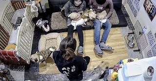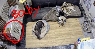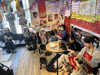 白パグのイブの双子Babyが、2階の育児ルームからカフェに引っ越してきました!お披露目中♡