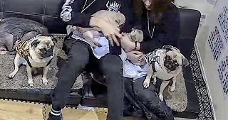 【生後1ヶ月】健康優良児!2キロ!パグ走りお披露目中!(白パグイブちゃんの双子ベビーズ)