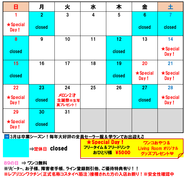 【2026.3月の営業日カレンダー】