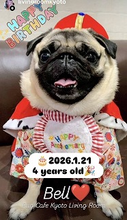 January 21st. Happy 4th birthday to rescue dog Bell! Thank you to our regular customers who always visit us and celebrate with gifts! Four years ago, we rescued Bell from a pet shop because we thought she wouldn’t live long due to her pectus excavatum (a condition in which the heart is on the right side of the body). Since coming to the cafe, she has thrived and has been blessed with children, living a happy and joyful life with them at the cafe. 💕 Last year, she underwent emergency surgery due to multiple organ failure, jaundice, high fever, and heart valve disease caused by toxins from a stillborn fetus in utero, but miraculously survived. She can no longer have children, but she’s still only 4 years old! We hope that she will continue to live a long, healthy, and happy life with everyone. 😊💕 Thank you for your continued support. 🙏✨️